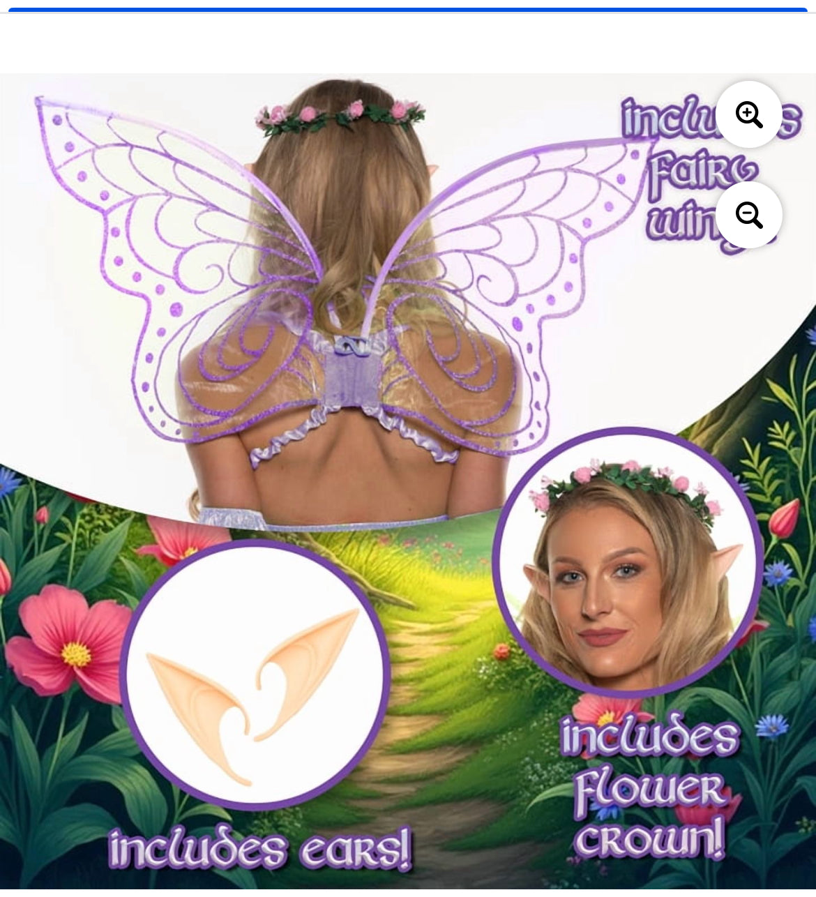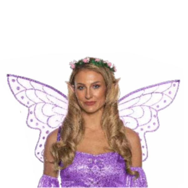Turn any outfit into a whimsical ensemble with this Fairy Accessory Kit! This quirky kit includes wings, ears, and a light-up flower crown in your choice of green or purple. One size fits most, making it the perfect addition for any playful occasion. (Fairies not included.)