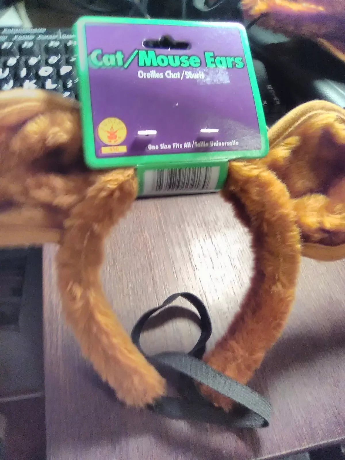 • These are ears that have a wire inside them that makes them shapeable. You can keep them round for a mouse or bend them into a more triangular shape for cat ears. The ears are plush on the front but are plain on the back and are attached to plush headbands with an elastic chin strap.