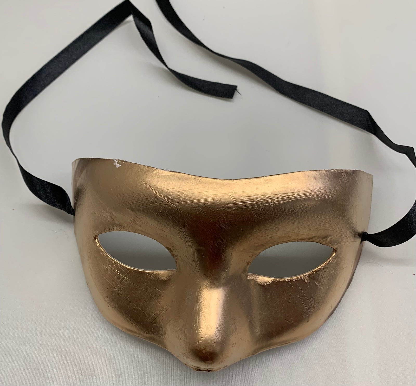 Paper Mache Masquerade Half Mask with Black Ribbon Ties
