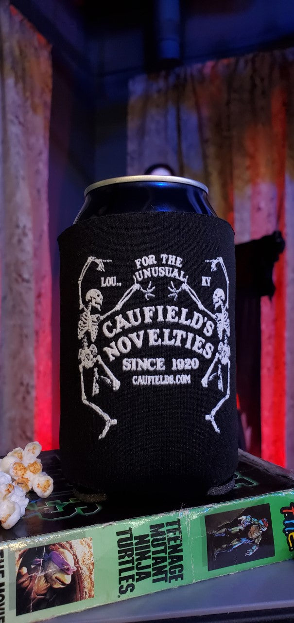 Caufield's Dancing Skeletons Black Can Koozie