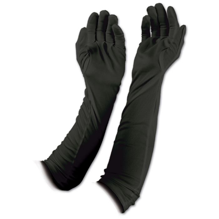 Elbow Length Ruched Gloves - Black