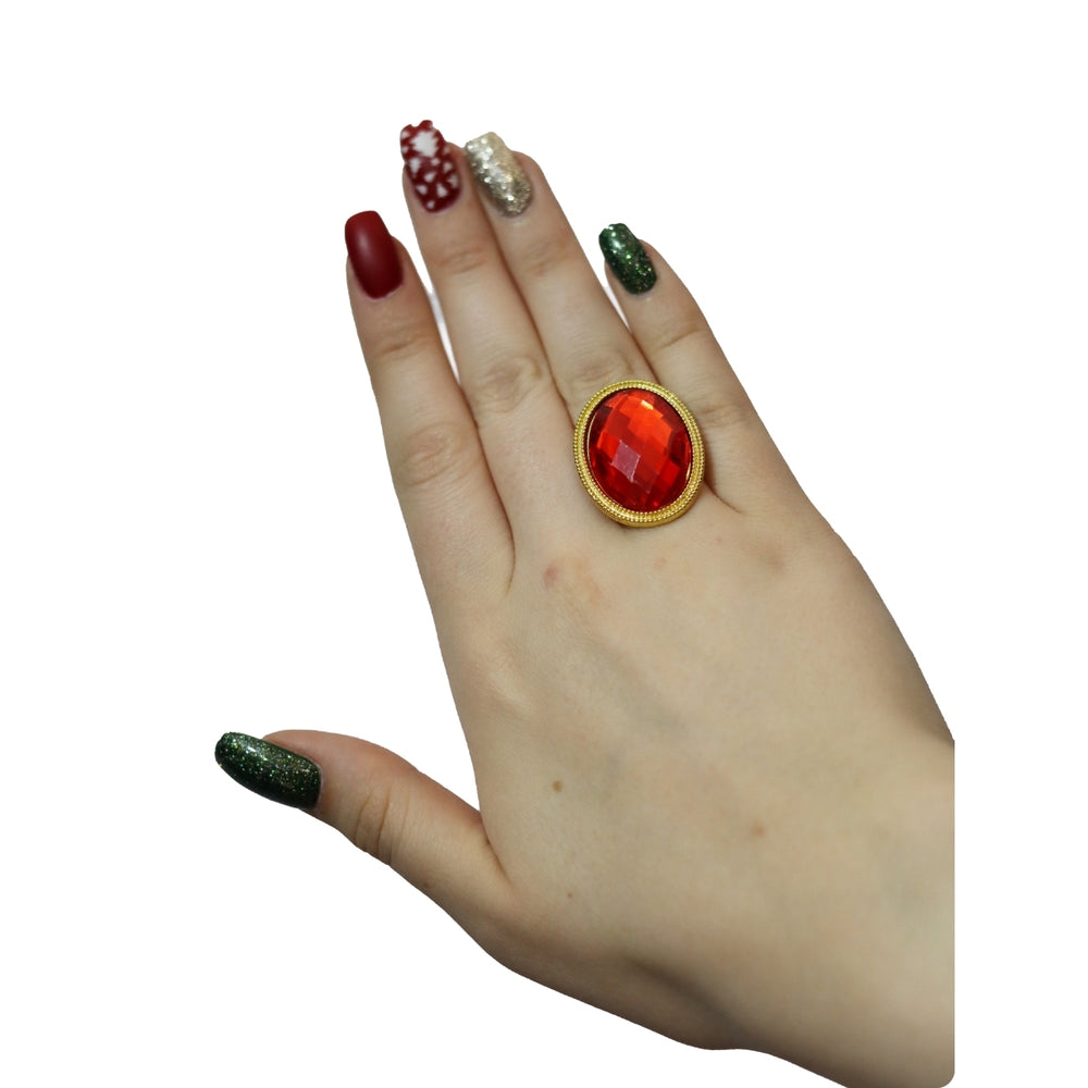 Elevate your costume with our Chunky Stone Ring. The adult size ring is the perfect accessory to add a unique touch to your Costume. With its chunky stone design, this ring will add a bold and stylish look to any costume. Make a statement with this jeweled piece.
