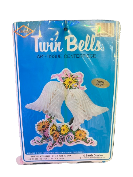 Vintage Twin Bells Art-Tissue Centerpiece - Light Blue