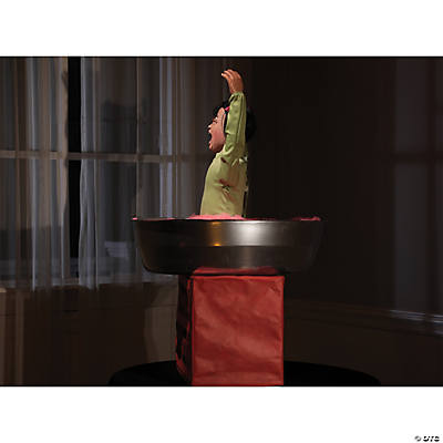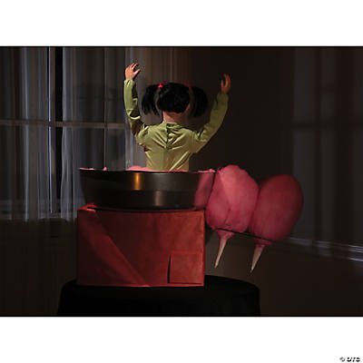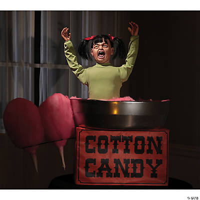 Round and round she goes where she stops, no body knows! Cotton Candice's love of sweet treats has caught her in a sticky situation that is spinning out of control! With her hands held high and vibrant carnival music playing, she Screams in Terror as a small motor twirls her around. The Cotton Candice Animated Prop's Set-up is a breeze with Metal Connecting Poles that lock in place and a Simple AC power cord that plugs into the wall. Cotton Candice is an ultra lightweight animated prop that can be placed on a counter or table top as needed to suit your display.Three activation options include, Steady-On, Infra-red Sensor, or Step-Here Pad. There is also a Volume Control so you can adjust to your surroundings. The Included Universal Adapter has 4 changeable plugs and works in USA, UK, Germany and Australia. Polyester, plastic, metal and electronics. 36" tall x 20" wide x 10" deep