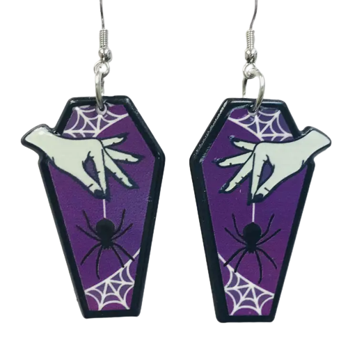 Spiderweb Coffin Acrylic Earrings