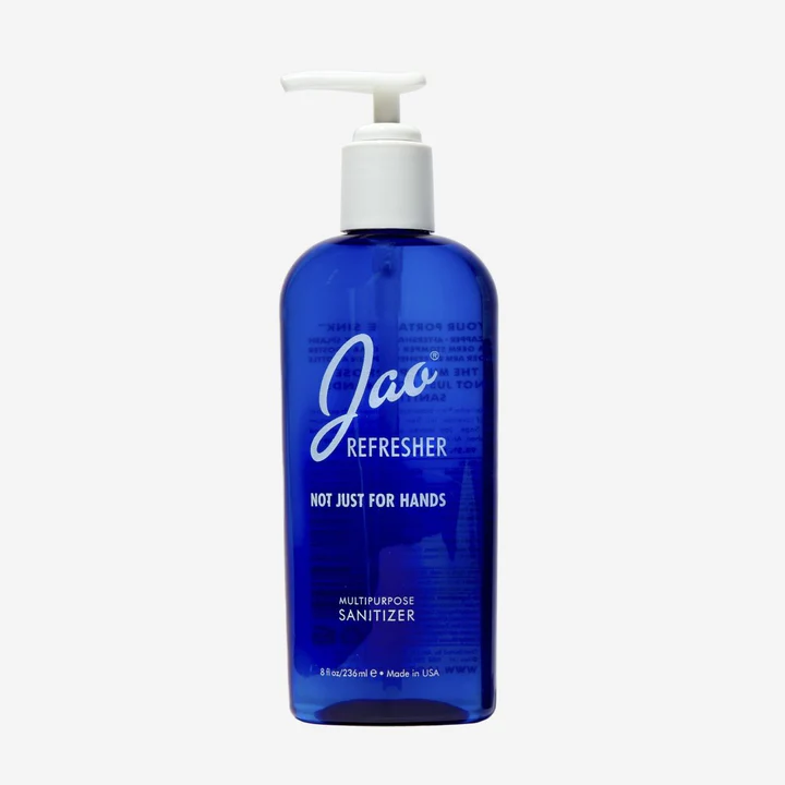 98.5% natural, multipurpose Jao Refresher™ is an instant disinfectant and aromatherapy boost in one. Awarded the Elle Green Star Award for Best Hand Sanitizer, it kills germs and freshens hands with Ethyl Alcohol (less drying) and our very own blend of antiseptic essential oils: Lavender, Tea Tree, Eucalyptus, Geranium and Sage. We combine Chamomile and Calendula with natural cosmetic moisturizers so it will not dry out your hands. We do not use Triclosan or Bezalkonium Chloride, which are bad for the environment. Leaves skin feeling soft and refreshed - an instant skin cooler, body pick-me-up.
