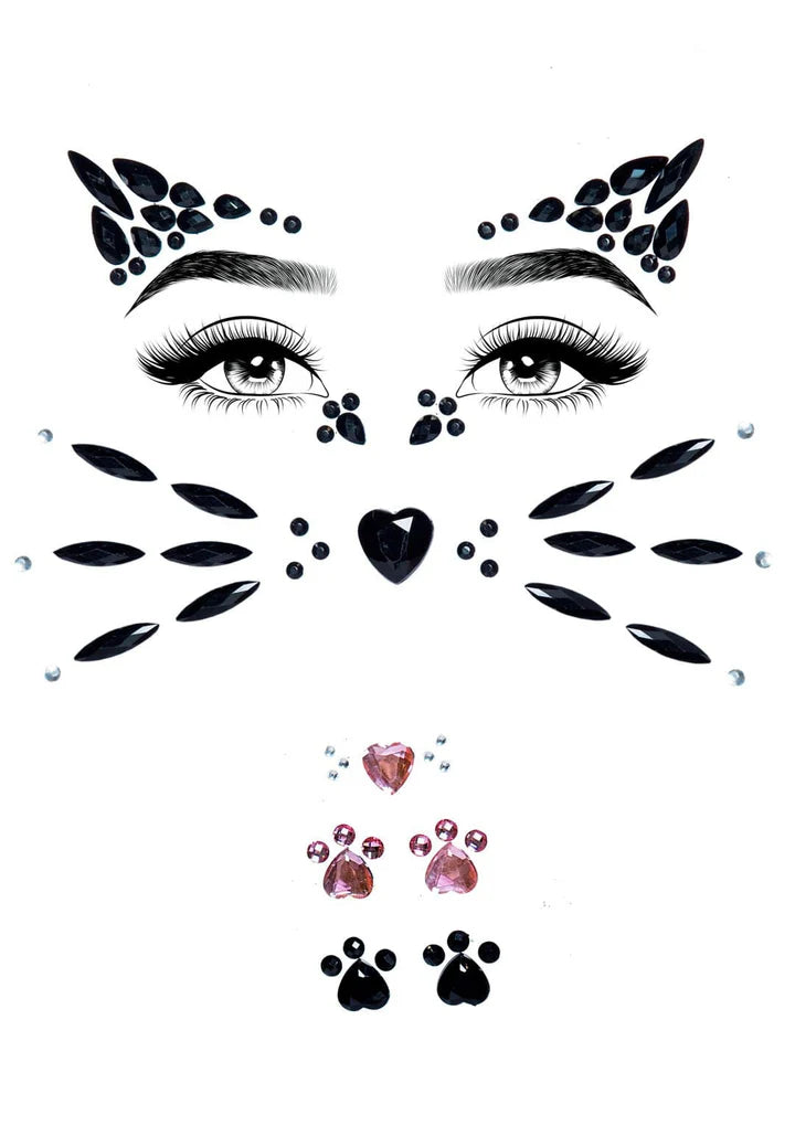 Stick on Black & Pink Kitty Cat Face Jewels