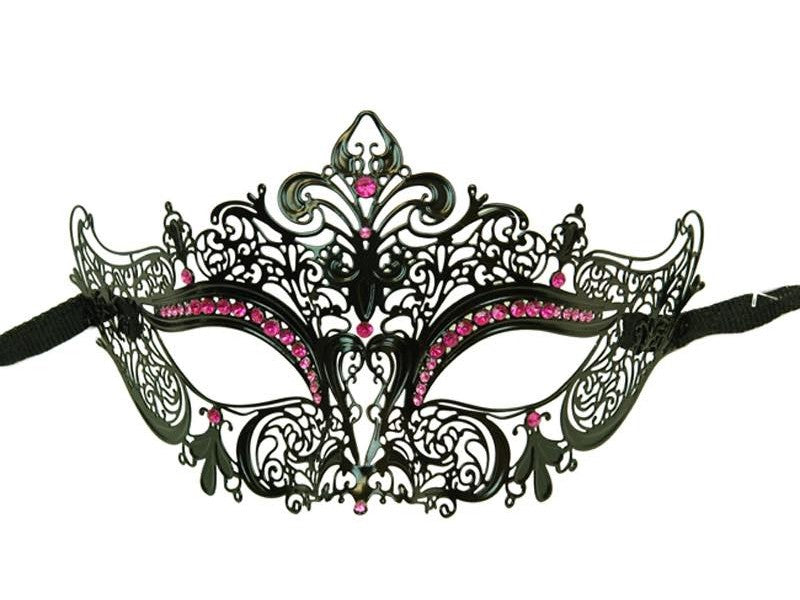 Black Metal Laser Cut Half Mask with Crystals