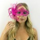 Hot Pink Half Mask with Feather Flower & Ribbons