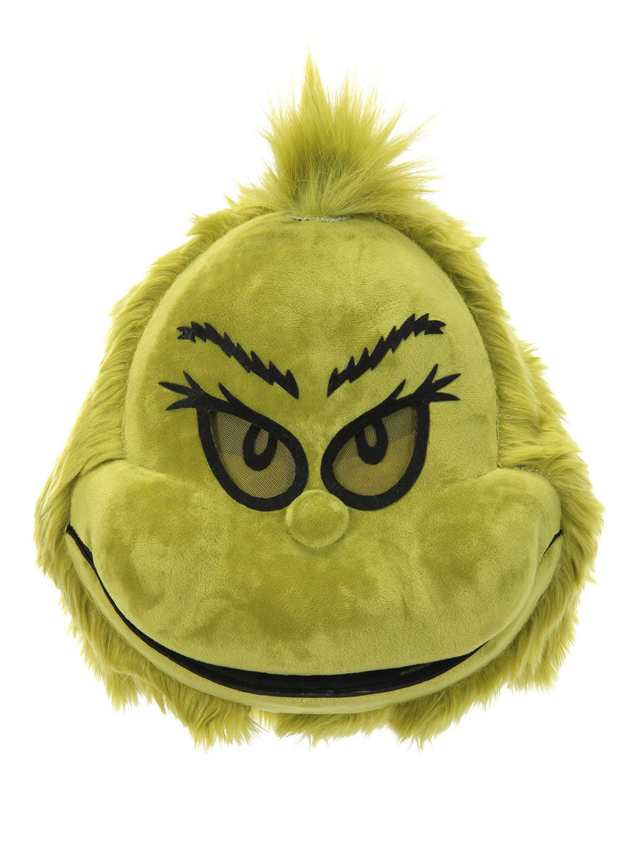 Steal Christmas with this Dr. Suess' The Grinch plush mouth mover mask. This mask recreates the Grinch's iconic visage made famouse by the beloved children's book and movie. Featuring plush construction, super soft crystal velboa and a proprietary design, this moving mouth mask will impress Who's everywhere. Slip the mask over your head and the carefully sculpted plastic construction and comfortable foam chin rest will allow for fun mouth moving action! Talk and the mask moves too! An inner elastic headband rests just below the base of your head and is adjustable to ensure each mouth mover can fit Who's tall and small. Whether you're looking for a unique standalond mask, or a finishing touch for your larger Grinch inspired costume, we thing you'll have a great Grinchy trick with this Dr. Seuss The Grinch Plush mouth mover mask.Â