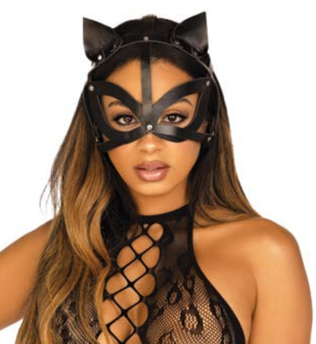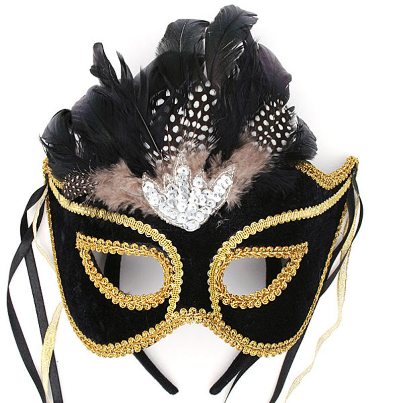 Half Mask with Feathers & Clear Jewels - Black & Silver