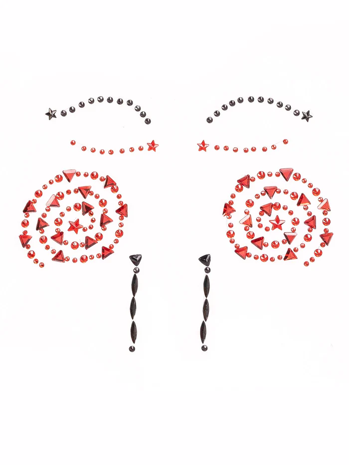 Transform yourself into a fierce puppet this Halloween with Puppet Face Jewels Self Stick! Featuring red and black gems in 8 self stick designs, this is an easy and fun way to become someone else for a night! Enjoy a unique look with no pain and no commitment - perfect for any Halloween party!