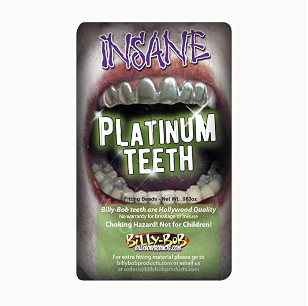 Get ready to flash a fearless smile with the Insane Grills - Billy Bob - Platinum Teeth! These silver metallic upper teeth grills add a bold, shiny edge to your look, perfect for standing out at any party or event. Easy to wear and designed to catch the light, they bring instant swagger and a playful vibe to your style. Show off your wild side with these standout platinum teeth!