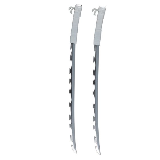 The Inosuke Dual Sword Set from Demon Slayer features a detailed toy sword accessory crafted from durable plastic. Measuring approximately 26 inches in length and 2 inches in width, this replica captures the essence of Inosuke's iconic dual swords, making it an excellent collectible or cosplay prop for fans seeking authenticity and quality.