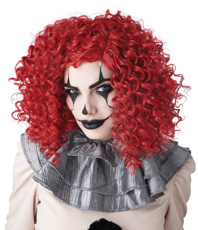 It's nothing to clown around with. The Corkscrew Clown Curls in red is curly mid-length wig. One size fits most.