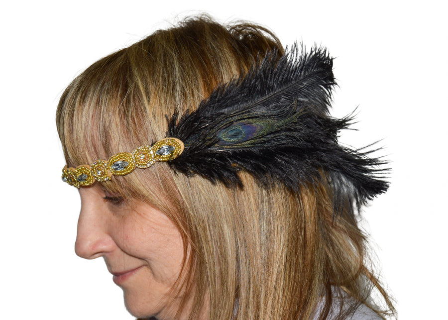 Add a touch of elegance and glamour to any outfit with our Black Feather Headband! This unique accessory features beautiful black feathers and sparkling diamond jewel details reminiscent of the 1920's. Perfect for adding some vintage flair and making a statement.
