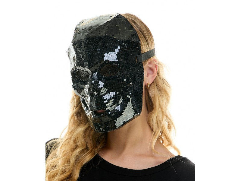 Transform yourself into a stunningly spooky figure with this Rhinestone Silver Skull Mask. The unique mask features a silver pattern of rhinestones that sparkles and shines in the light, ensuring you will be the standout at the Halloween bash.