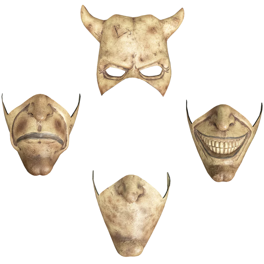 Set includes: 1 top mask piece, and 3 interchangeable mouth pieces.