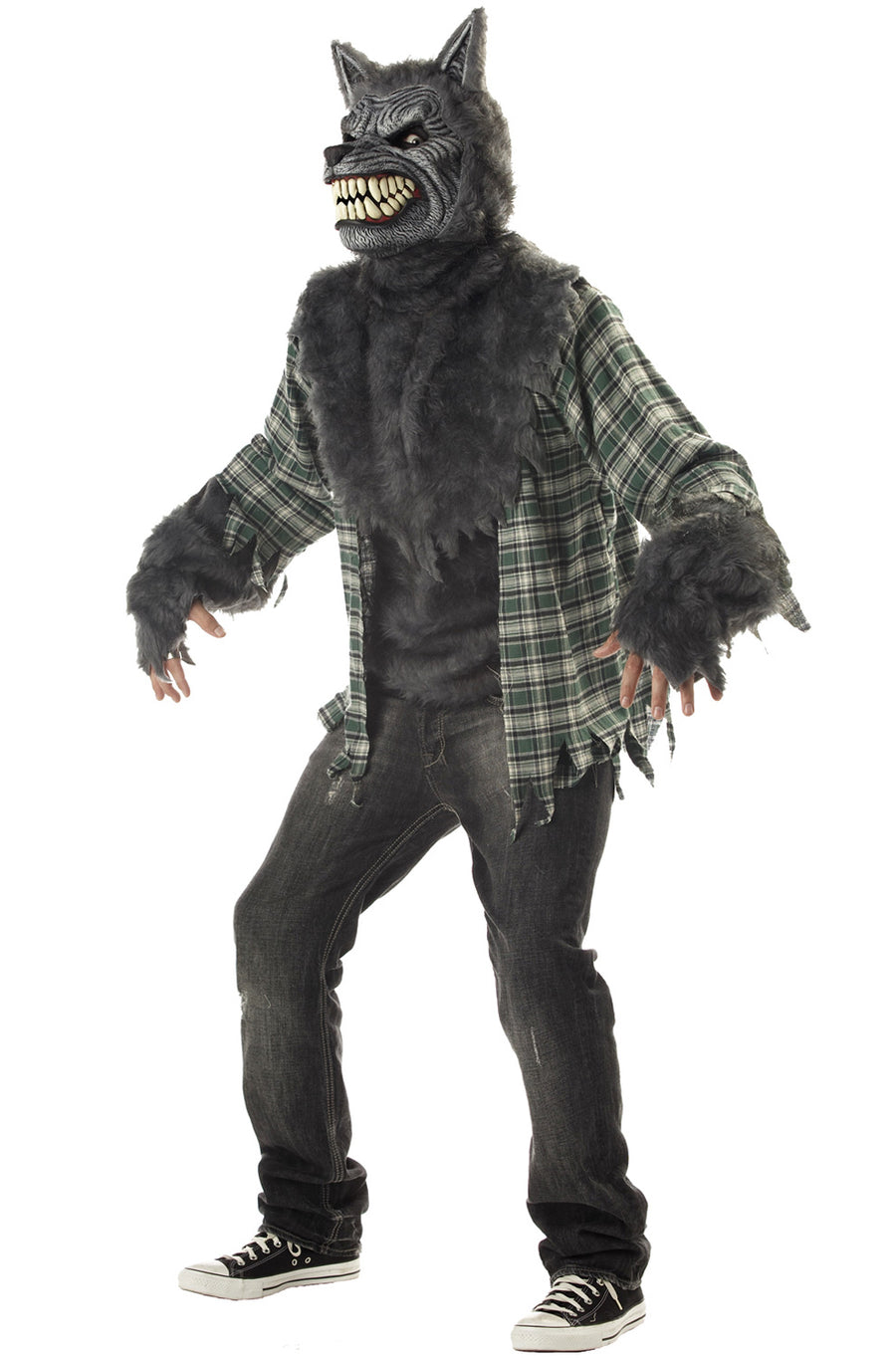 Transform yourself into a werewolf this full moon and scare the pants off everyone you come across! This costume features a tattered shirt with werewolf fur to show evidence of your transformation. It also a has a moving mask so realistic, your friends will wonder 'howwwwwwllll' you did it!