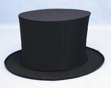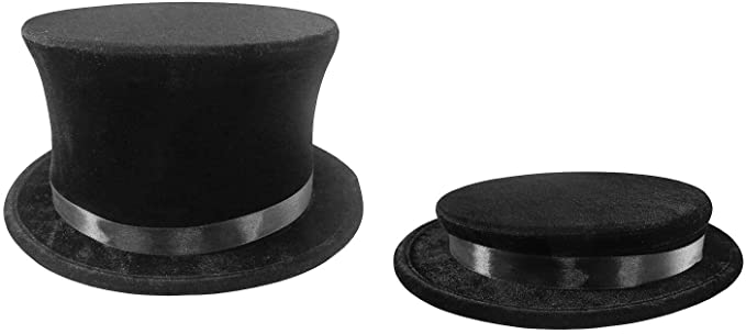 This pop-up top hat is an incredible quality for the price. Simply hold the brim of the hat with both hands and pop it and a full-size top hat will appear out of nowhere. Suede like black material. Adult one size fits most.